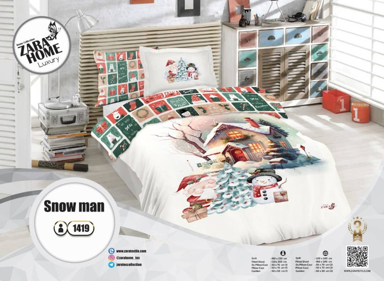 روتختی مدل SNOWMAN1 برند zaraHome (زاراهوم ایرانی) 5 تیکه تک نفره جنس میکرو تنسل