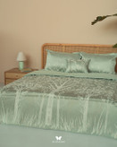 این روتختی از جنس ساتین ژاکارد ساخته شده است که برخورداری ازشاین و جذابیت بصری بالایی می باشد. این پارچه بدون کاهش و افت رنگ و طرح، بدون رنگدهی تولید میشود. جنس آستر لحاف و روکش تشک نیز از جنس براش با لطافت و مقاومت بالا برخوردار است.